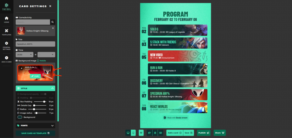 Exportez le visuel de votre planning TWITCH au format mobile !